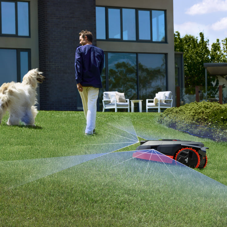 VisionFence™ säkerställer bekymmersfri gräsmattevård med avancerad säkerhet och undvikande av hinder. Dess 300° vidvinkelvy upptäcker människor på upp till tre meters avstånd och saktar ner till 0,2 m/s på säkert avstånd. Den intelligenta Planner-algoritmen navigerar med precision, för familjevänlig säkerhet utan att kompromissa med prestanda.